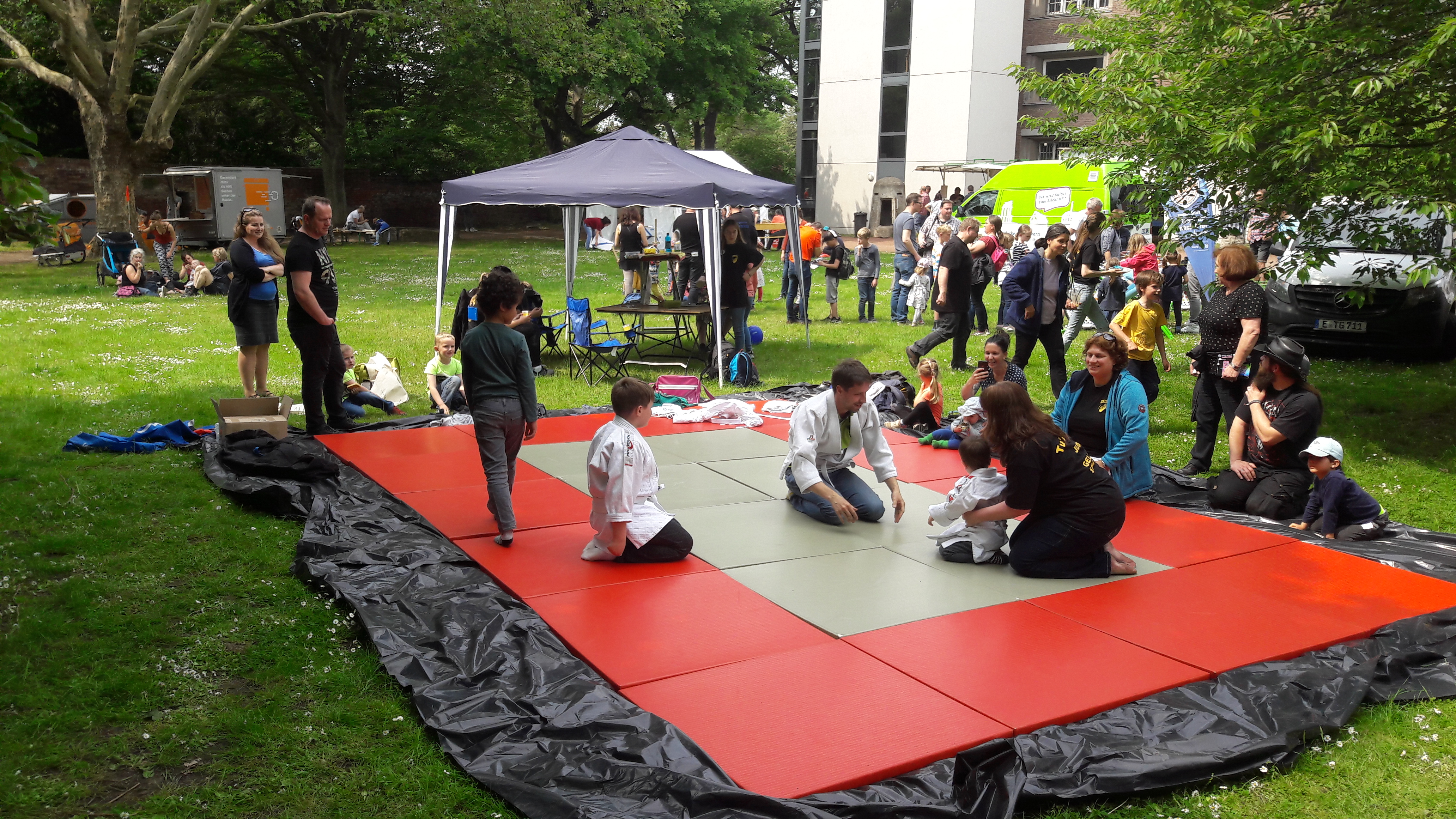 Über eine gelungene Teilnahme beim diesjährigen Crossover auf und um Burg Linn konnte sich unsere Judoabteilung freuen. Hier stellten wir einen Aktionstand, bei dem Interessierte Judo ausprobieren konnten. War der Vormittag noch eher gering besucht, wurde es ab 12 Uhr deutlich aktiver. Neben einem "Probetraining" wurde auch Button für die Besucher hergestellt.