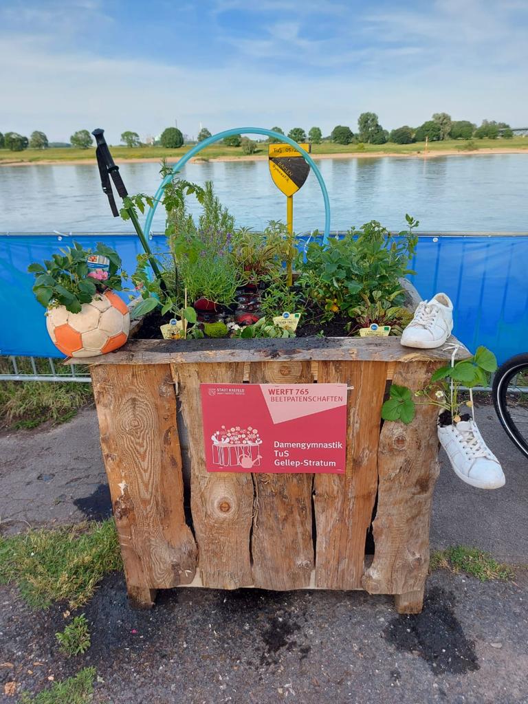 Im Rahmen der Beetpatenschaften der Stadt Krefeld hat die Damengymnastikabteilung des TuS eine Patenschaft für einen Pflanzkübel am Rhein übernommen, die sich nicht nur sehen lässt, sondern auch zu einem Besuch einlädt. Vielen Dank für diese tolle Aktion!