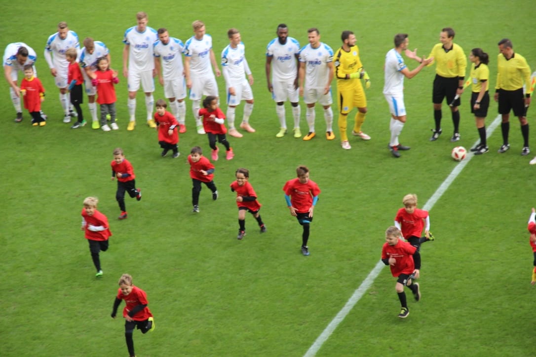 Nach einer entspannten Anreise zum Stadion, bis auf den Blitzer auf der B288, wurden die Kinder von zwei Betreuerinnen des KFC in Empfang genommen und verschwanden dann mit ihnen in den Katakomben.